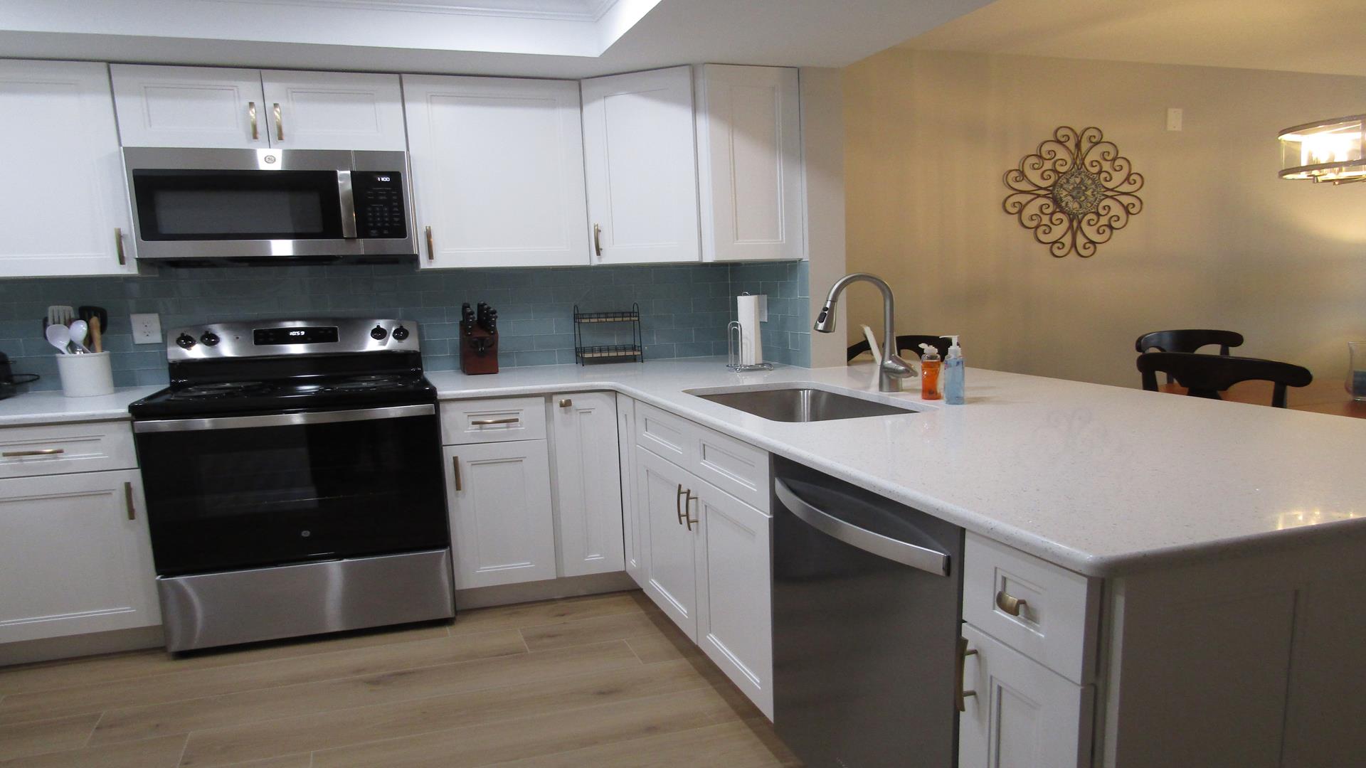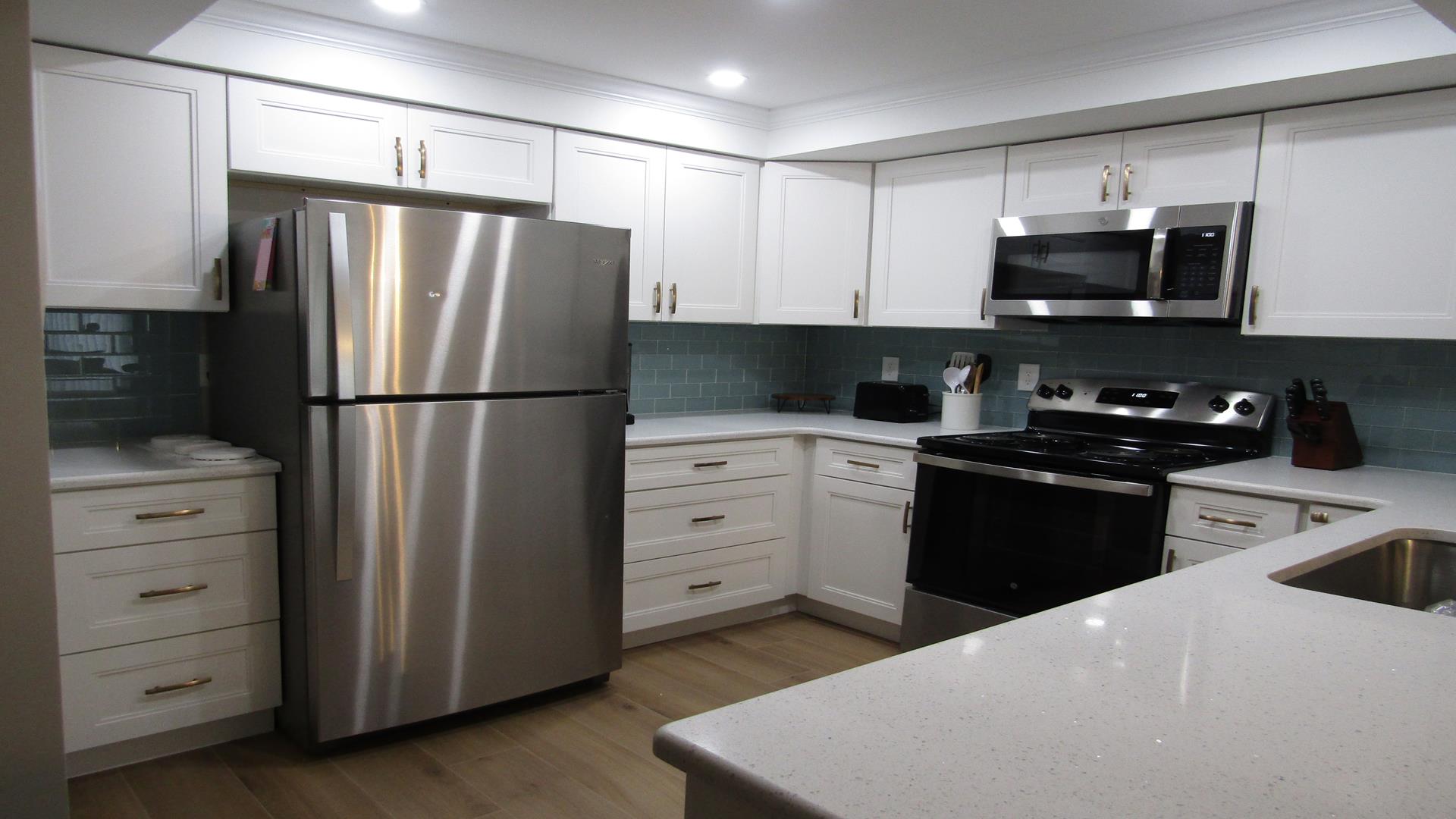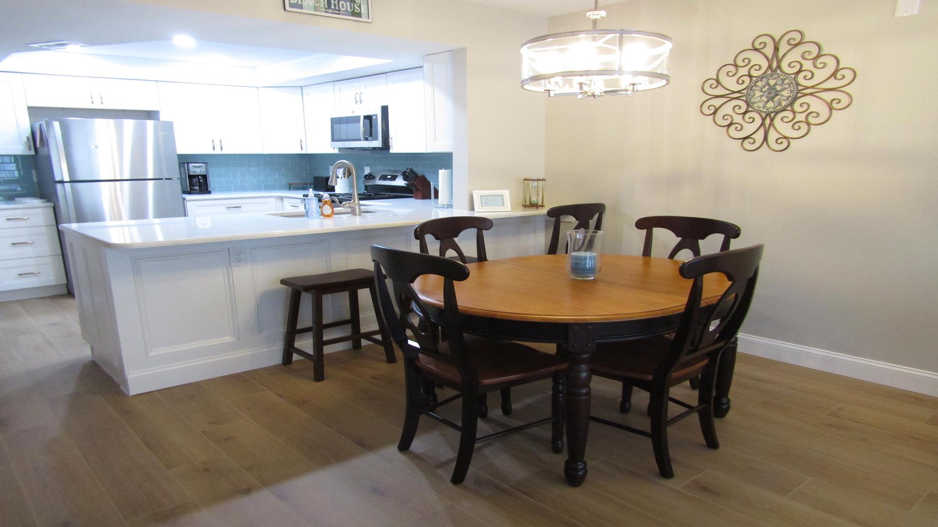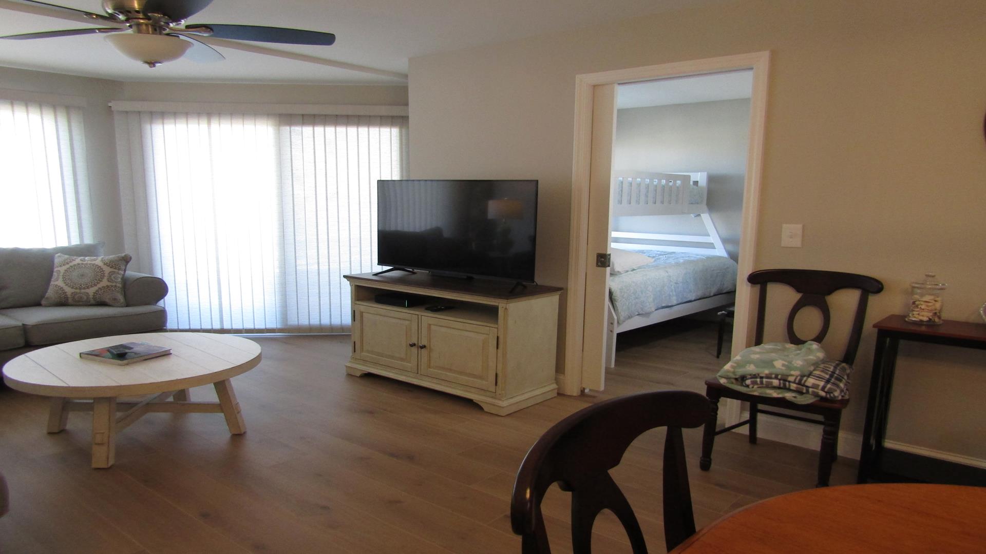 Beautifully renovated one-bedroom plus den, one-bath residence that has been completely refreshed from top to bottom. Features include new flooring, paint, furniture, and mattresses, along with an upgraded kitchen showcasing new countertops and appliances. The master bedroom and living room feature ceiling fans, and the bathroom has been fully updated with new tile, vanity, and a glass shower door with curtain. Additional highlights include an in-unit washer and dryer and new balcony furniture added in 2024. A stunning, move-in-ready coastal retreat.